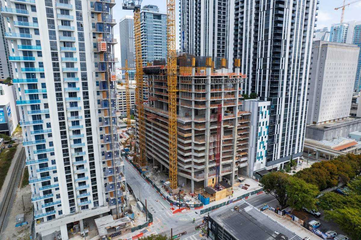 - 222: 222, consisting of two forty-three-story towers in Downtown Miami, encompassing 1.3 million square feet of mixed-use space, housing 1,394 residential units alongside 7,984 square feet of commercial space on the ground floor. Amenities include a pool deck, cabana area, barbecue space, gym and fitness studio, game lounge, coworking spaces, bowling room, and golf simulator room.