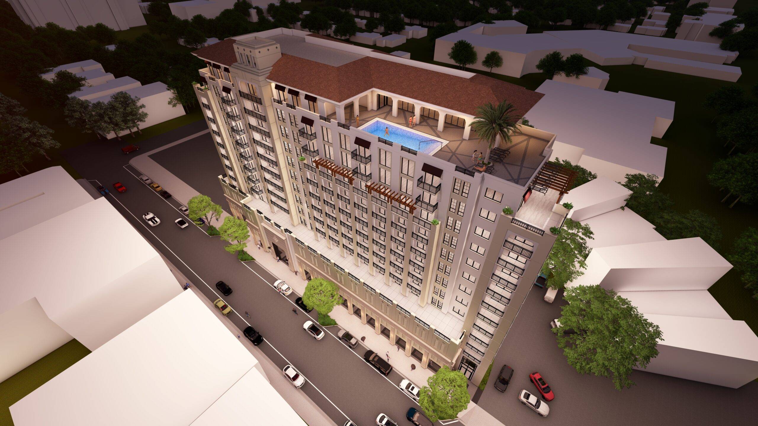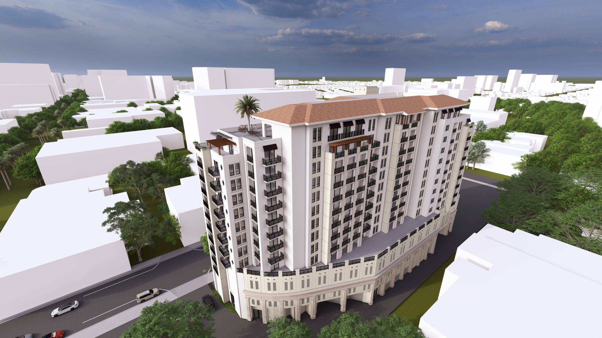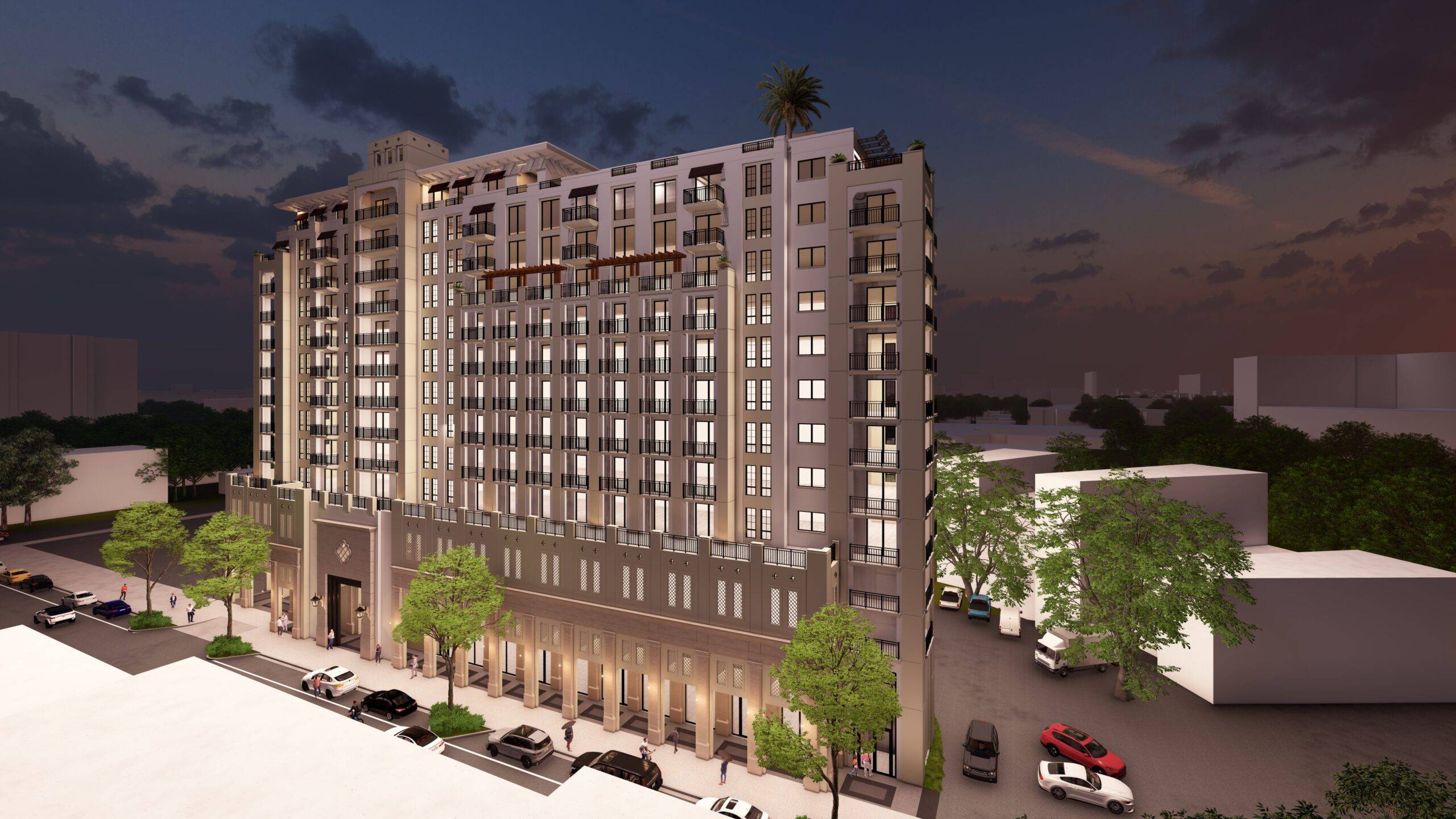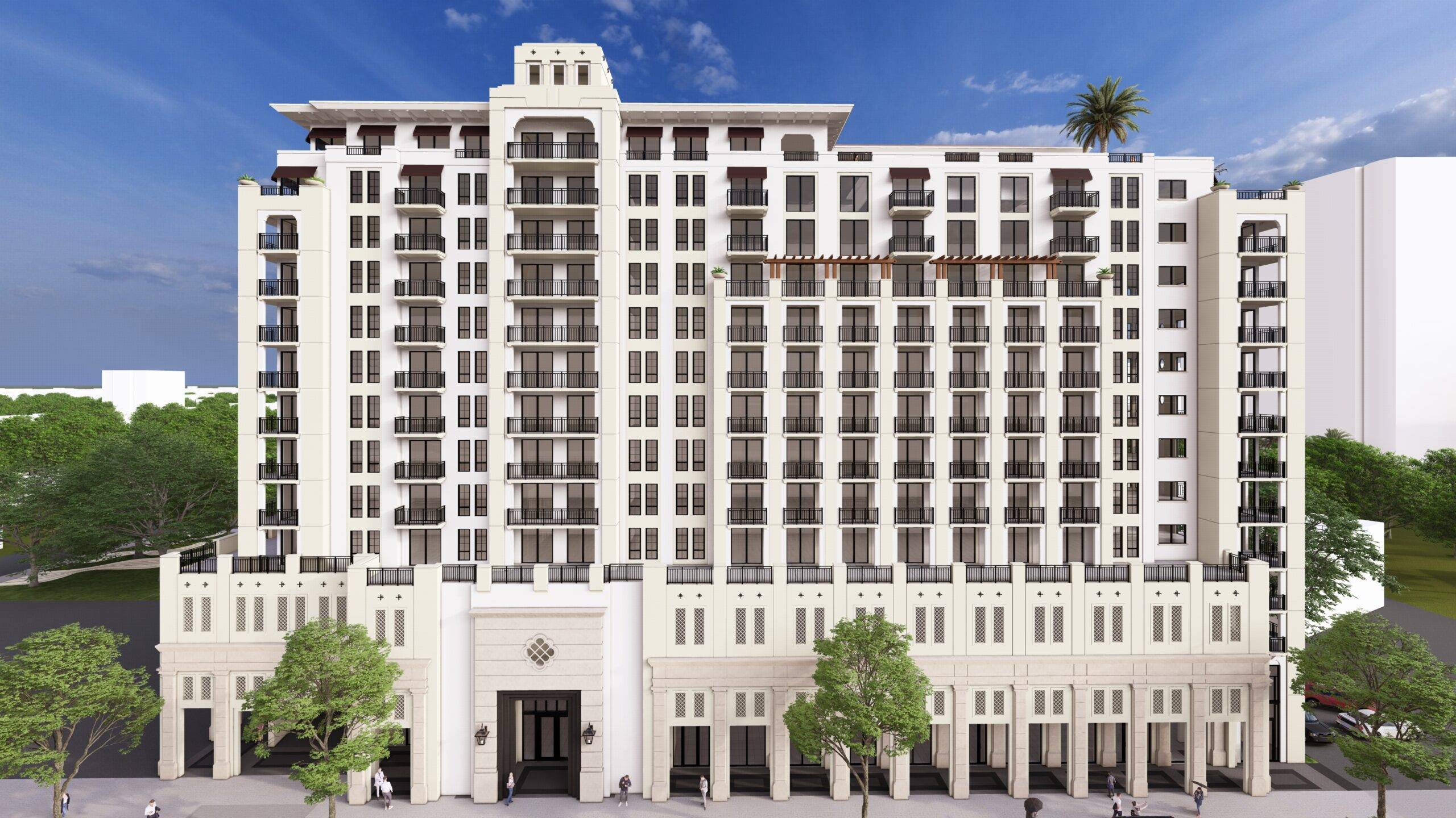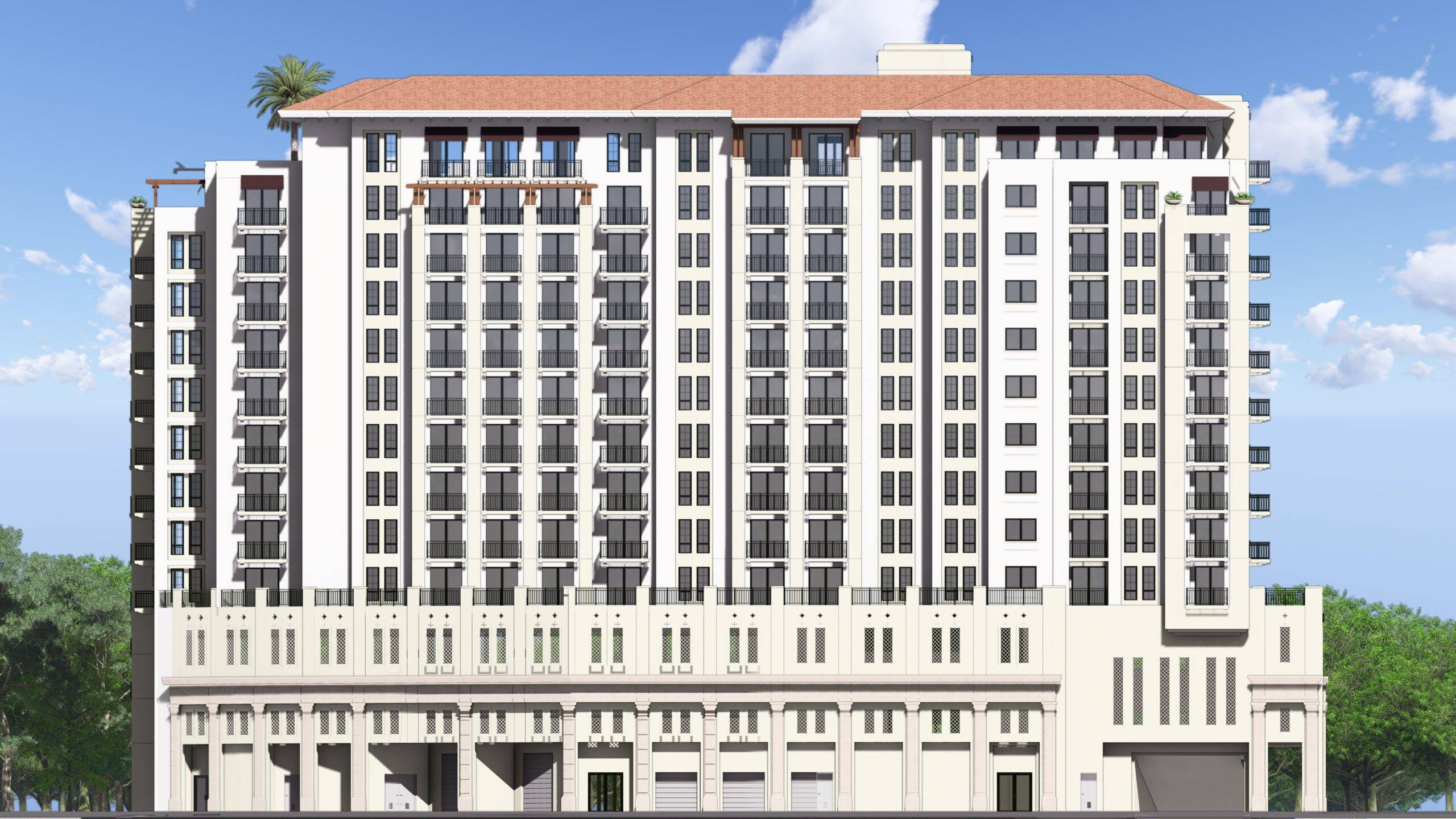 This project is a 13-story mixed use building containing approximately four live/work units and 122 upper-level residential units with a rooftop deck including ancillary amenity space. The Project has been designed to include the redevelopment of 2701 Ponce de Leon Boulevard and the creation of an approximately 12,500 square foot public park at 103 Sevilla Avenue.