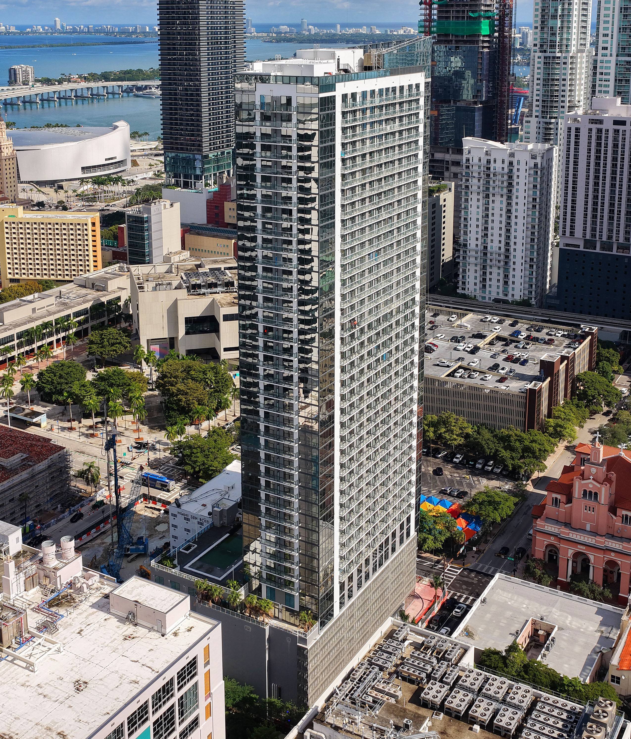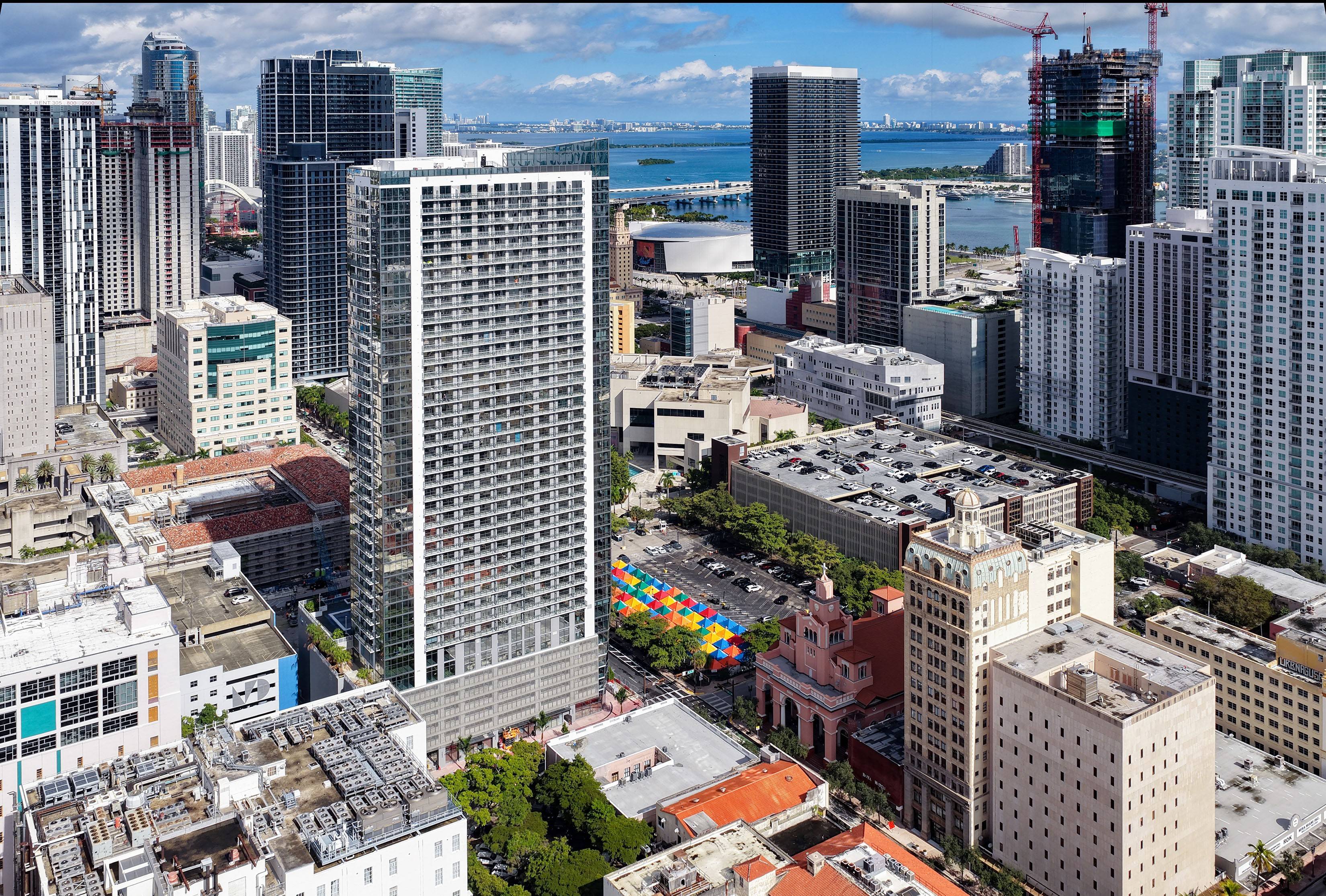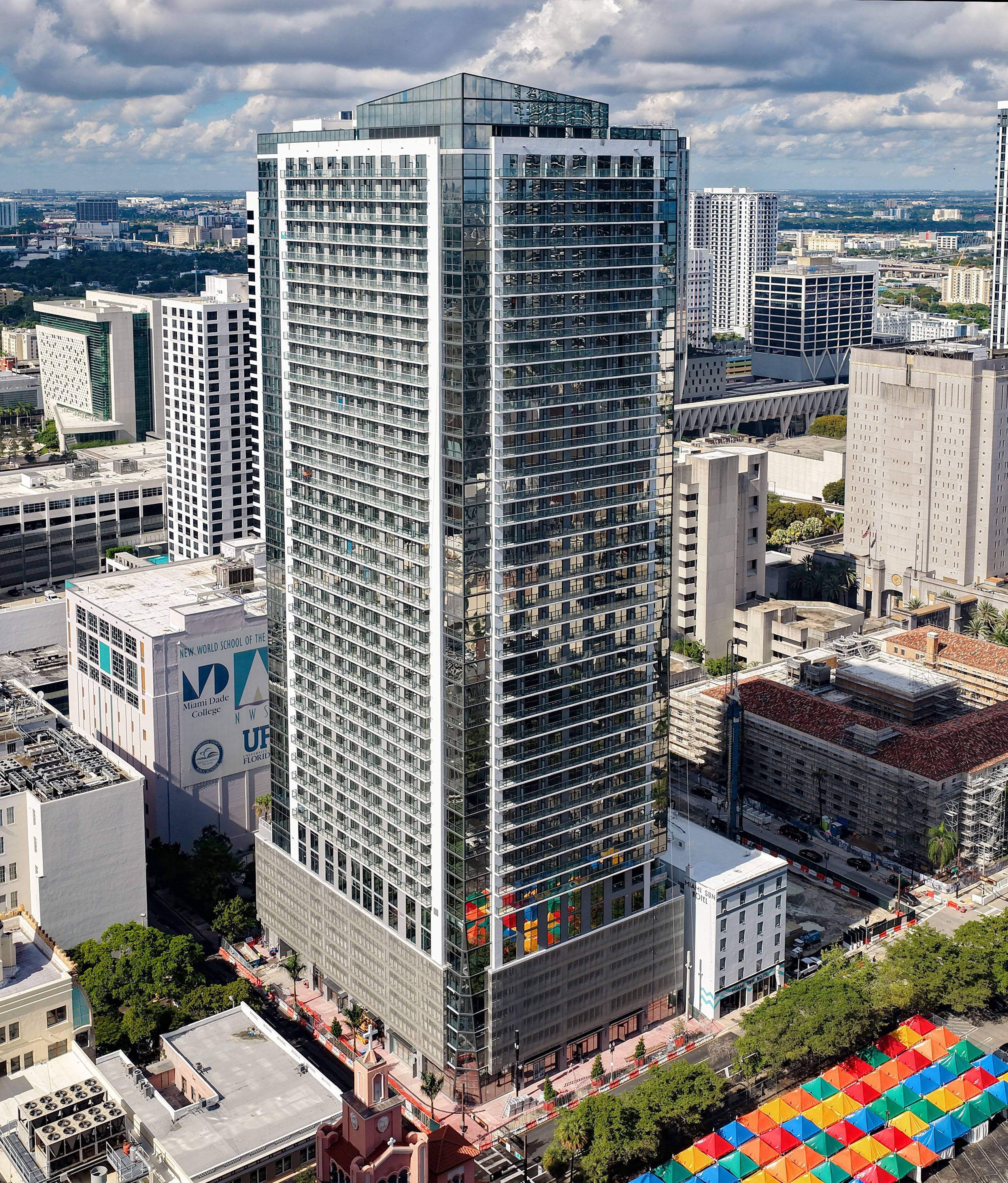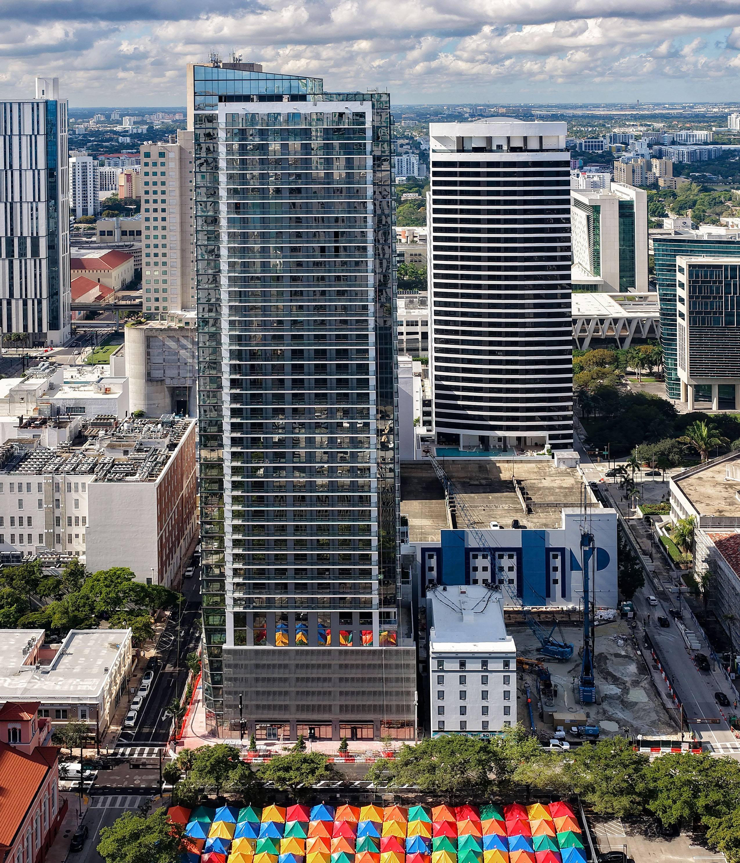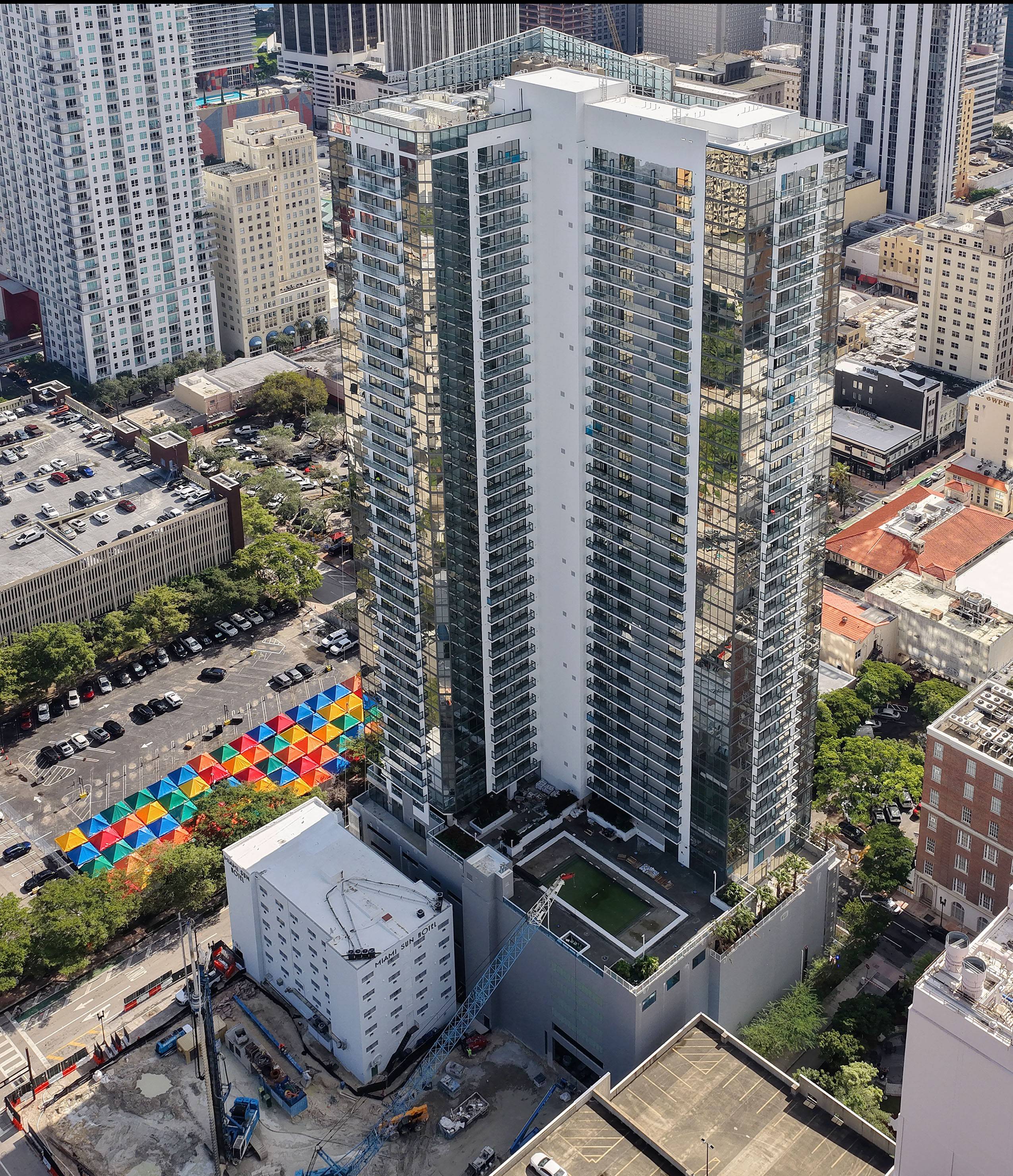 This project consists of two forty three story towers in Downtown Miami, with 1.3 million-square feet of mixed-use space. It aims to house 1,394 residential units alongside 7,984 square feet of commercial space on the ground floor. Amenities will include a pool deck, a cabana area, barbecue space, a gym and fitness studio, game lounge, coworking spaces, bowling room, and golf simulator room.