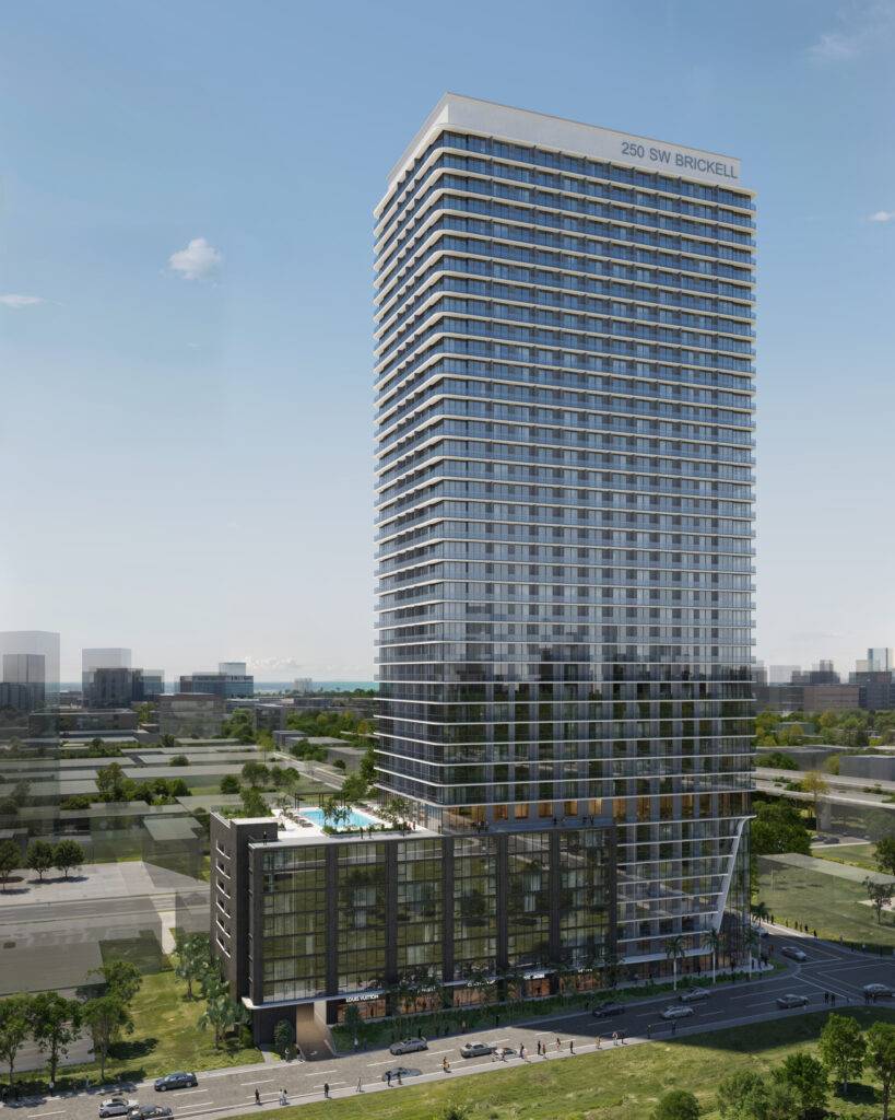 This project consists of two forty three story towers in Downtown Miami, with 1.3 million-square feet of mixed-use space. It aims to house 1,394 residential units alongside 7,984 square feet of commercial space on the ground floor. Amenities will include a pool deck, a cabana area, barbecue space, a gym and fitness studio, game lounge, coworking spaces, bowling room, and golf simulator room.