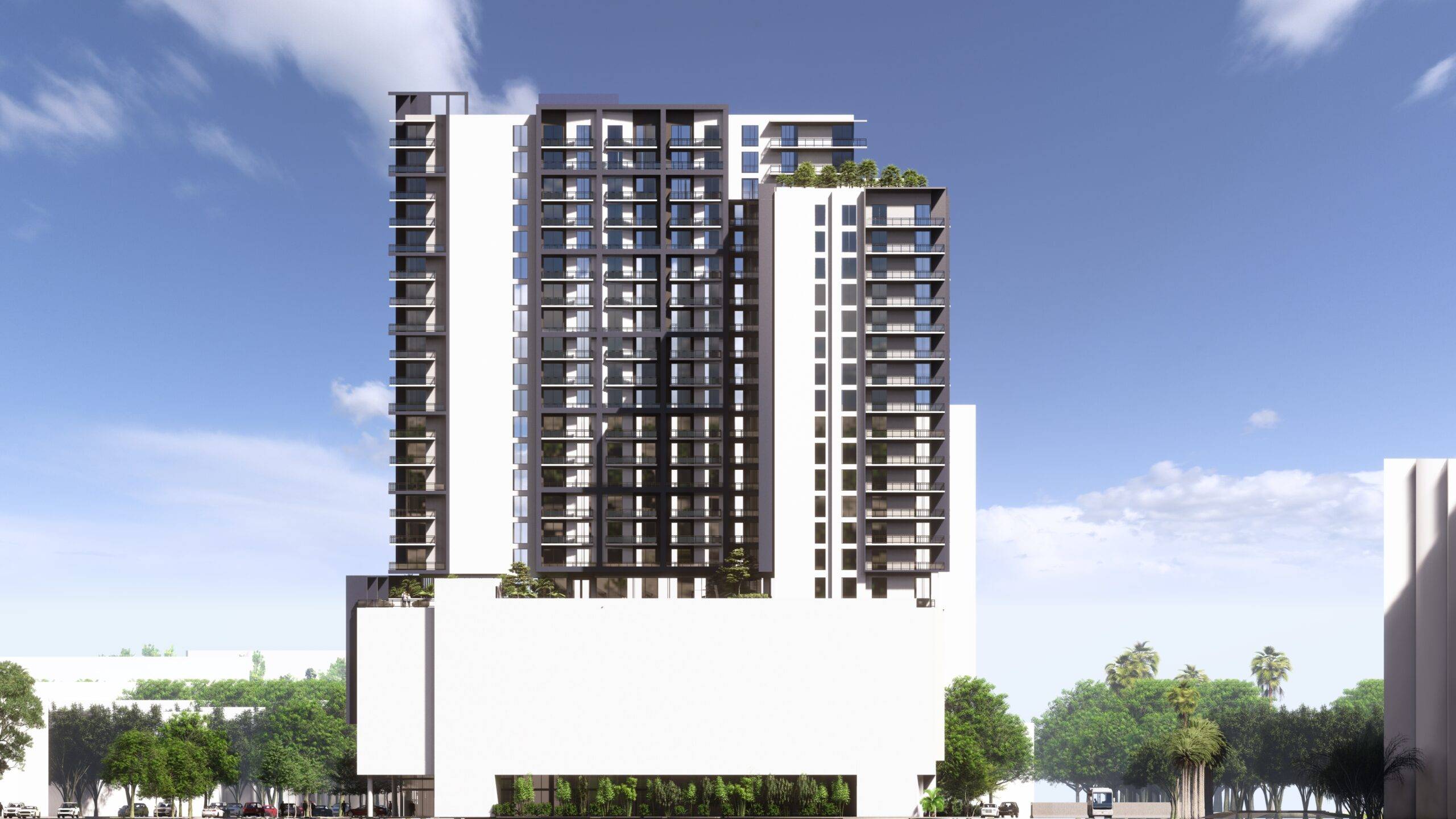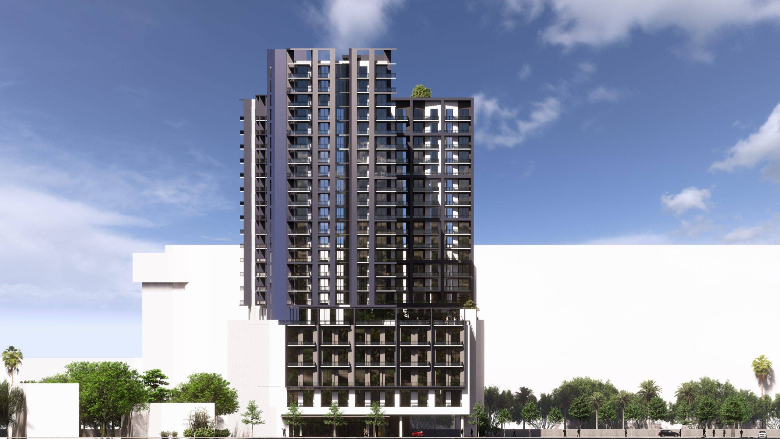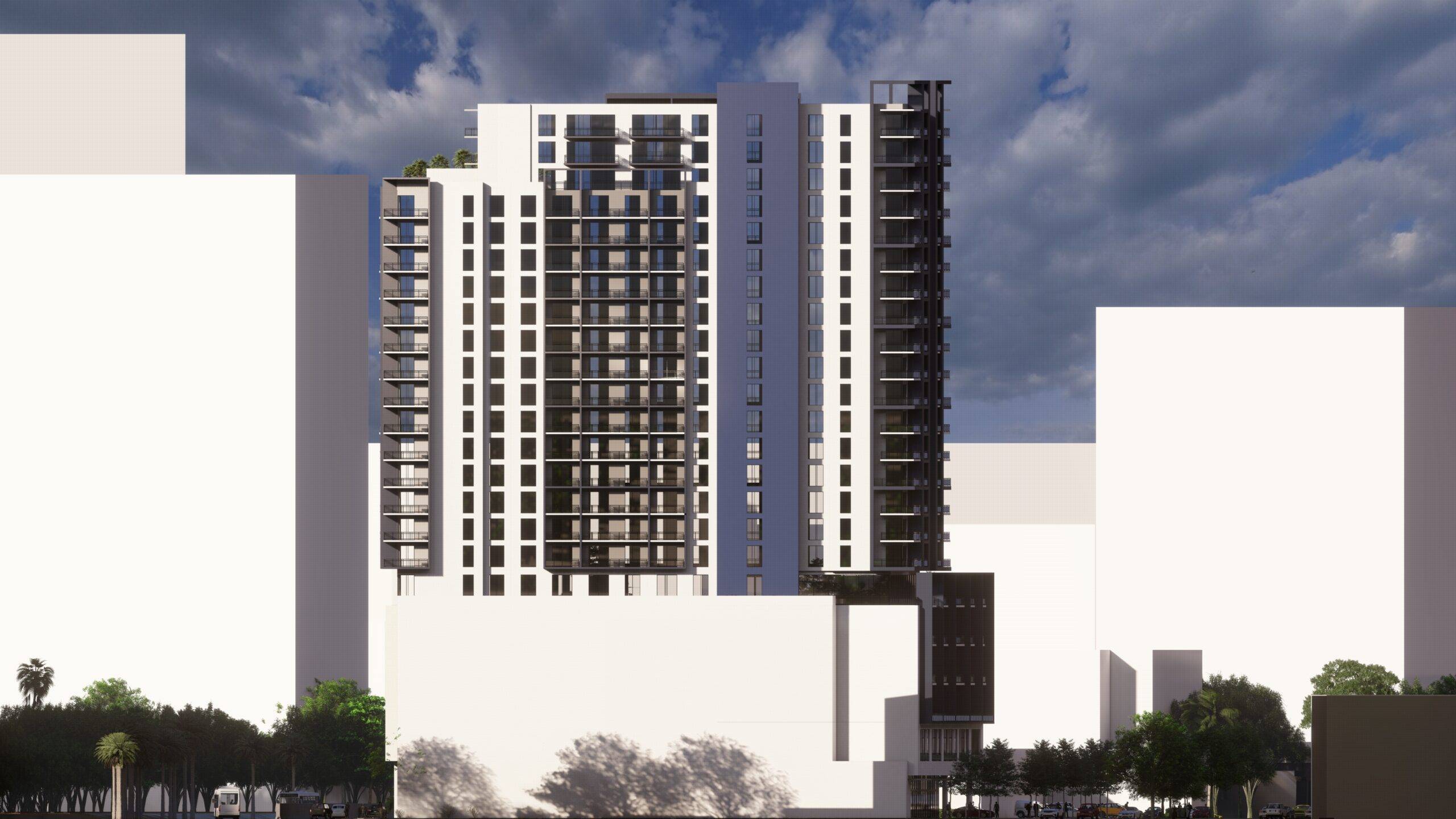 This project consists of one residential 23-story building with a total of 290 units. Some amenities include a club room, gym, sky deck, BBQ areas, pool area, and office center.