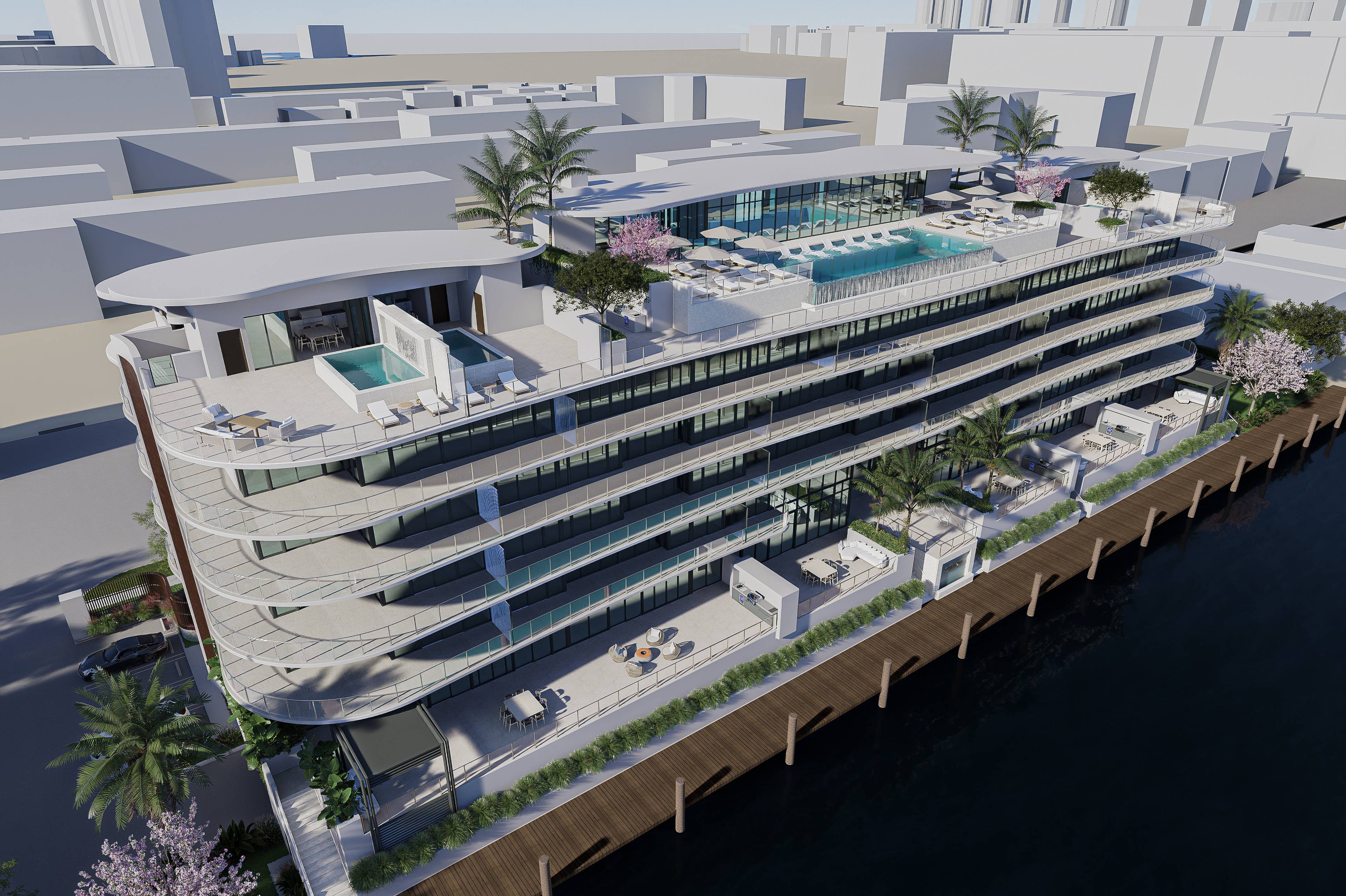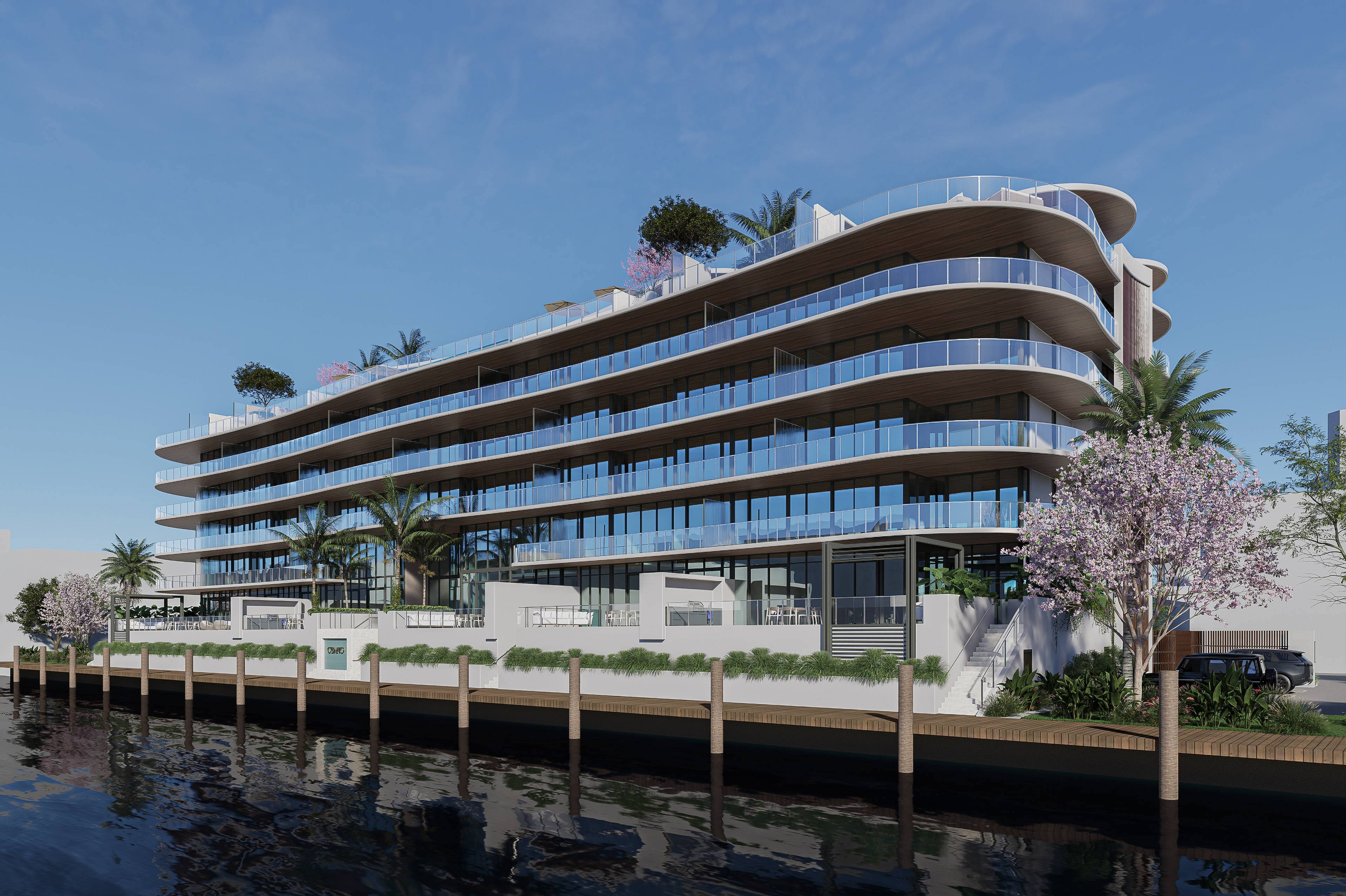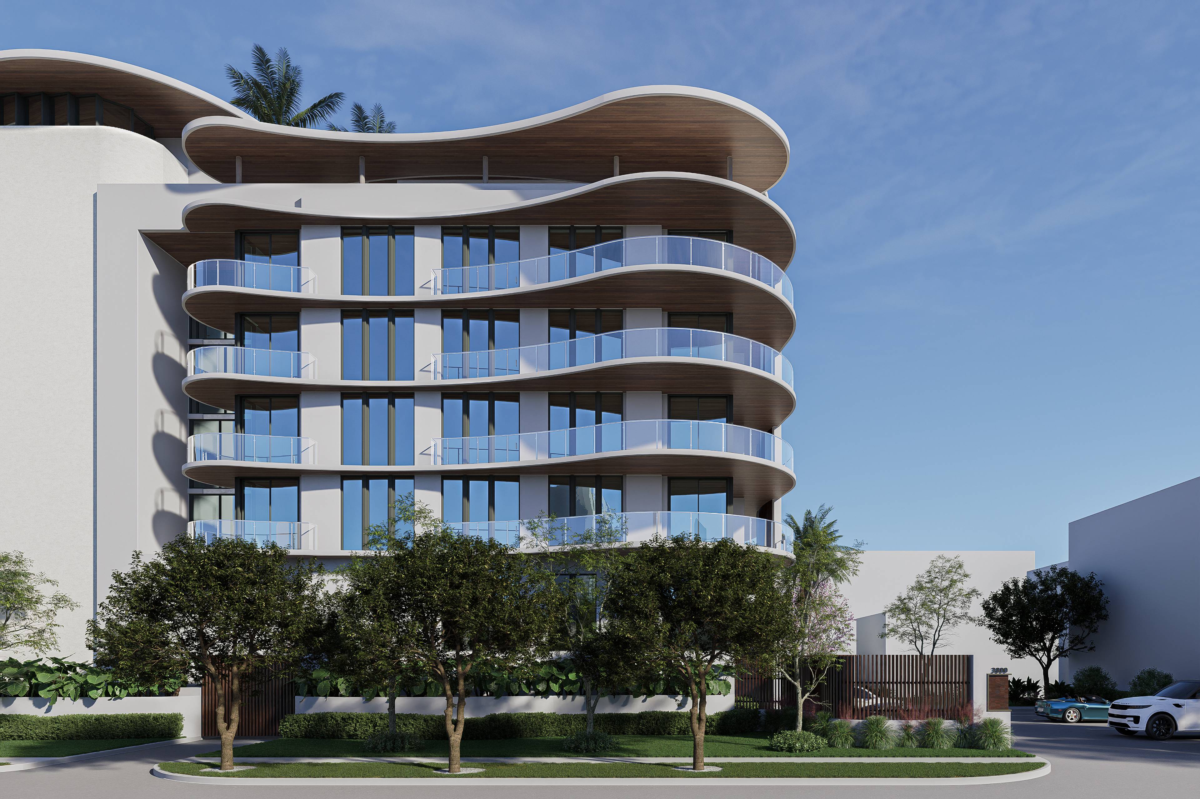 This project consists of a five-story residential building with 25 luxury units above basement parking, totaling 81,105 square feet. Amenities include a gym and spa, wine cellar, and a two-level rooftop pool deck with BBQ and lounge areas. The design offers exclusive coastal living in North Miami Beach.