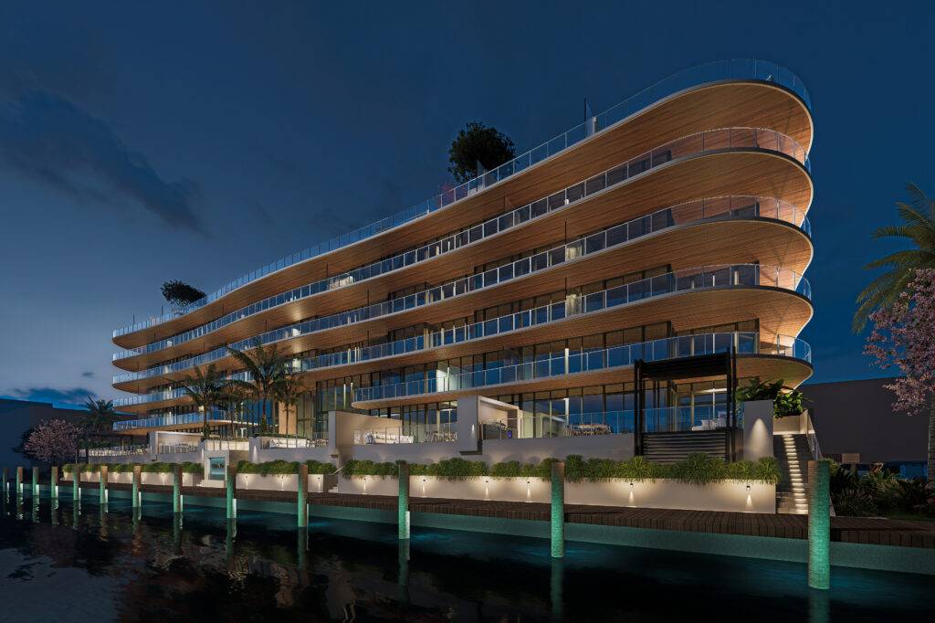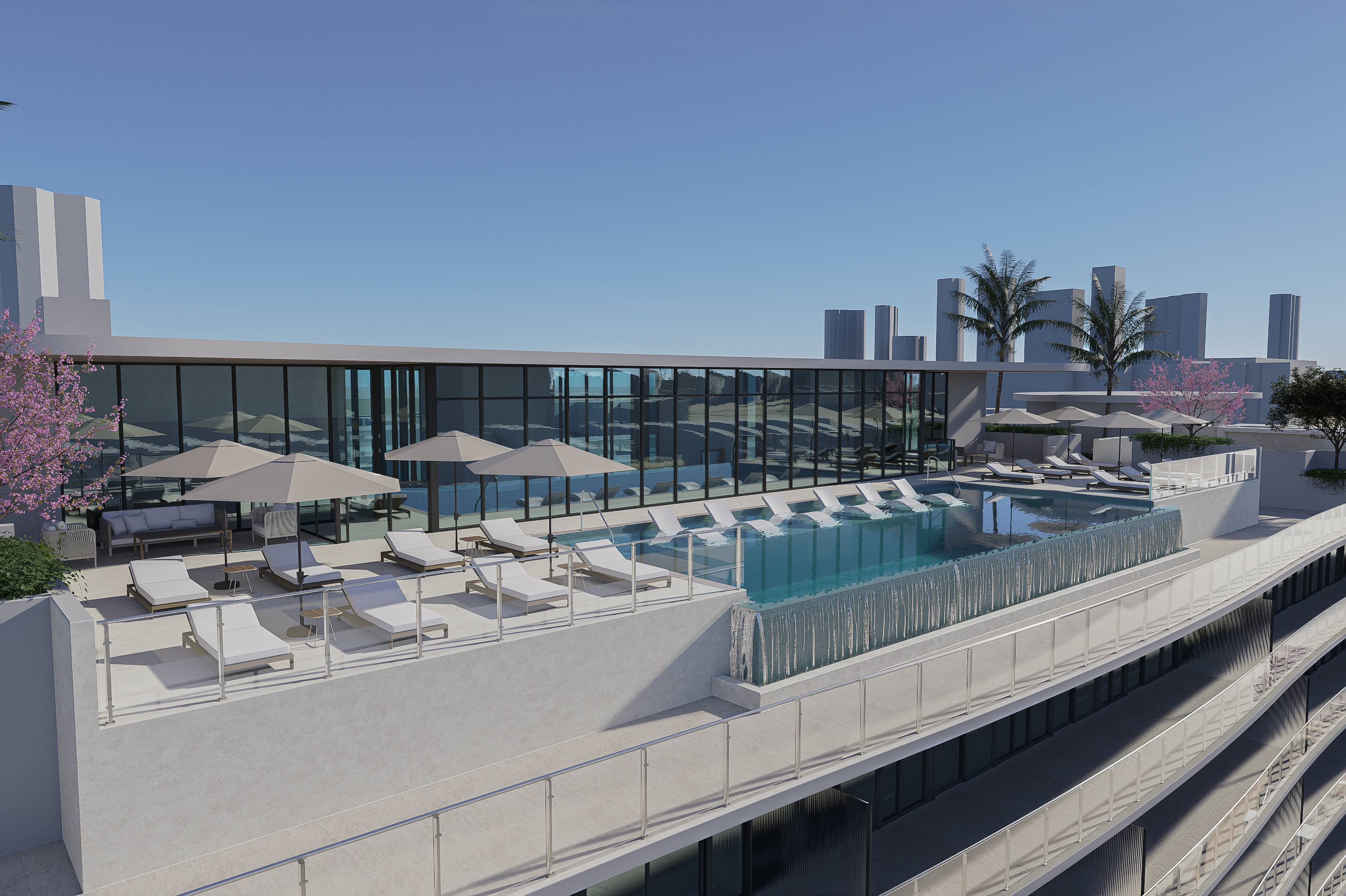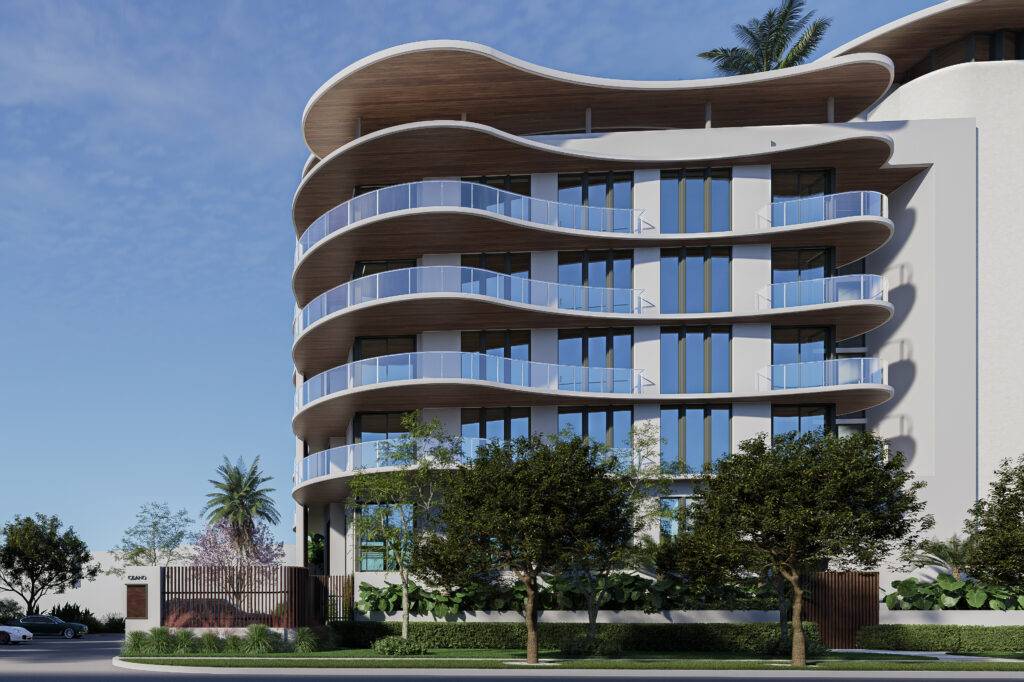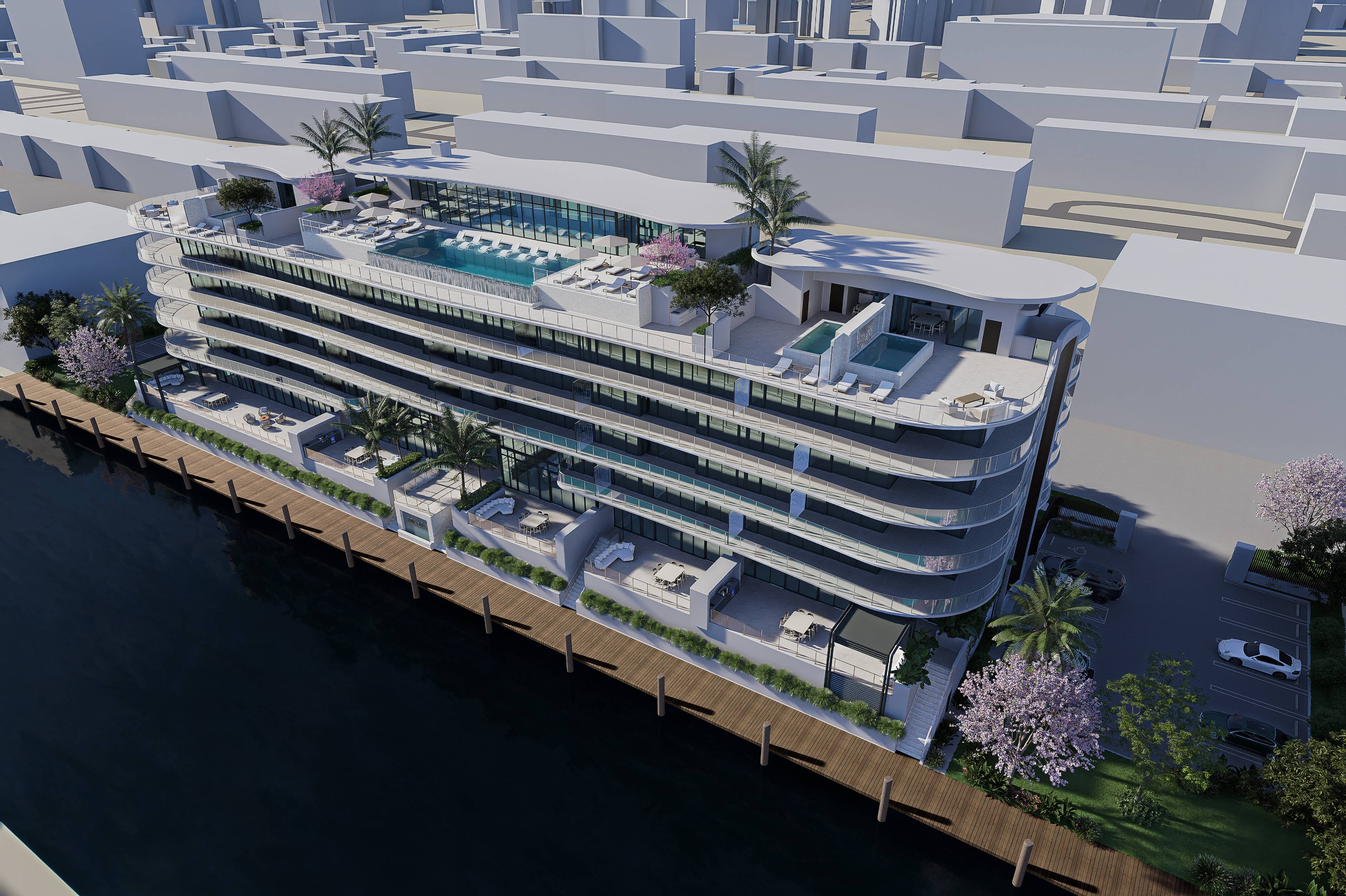 This project consists of a five-story residential building with 25 luxury units above basement parking, totaling 81,105 square feet. Amenities include a gym and spa, wine cellar, and a two-level rooftop pool deck with BBQ and lounge areas. The design offers exclusive coastal living in North Miami Beach.