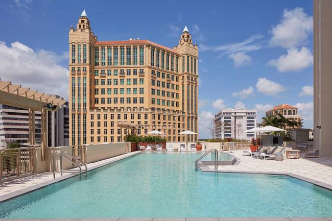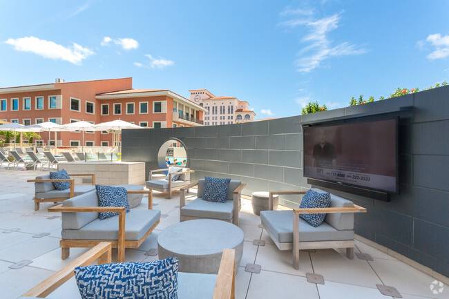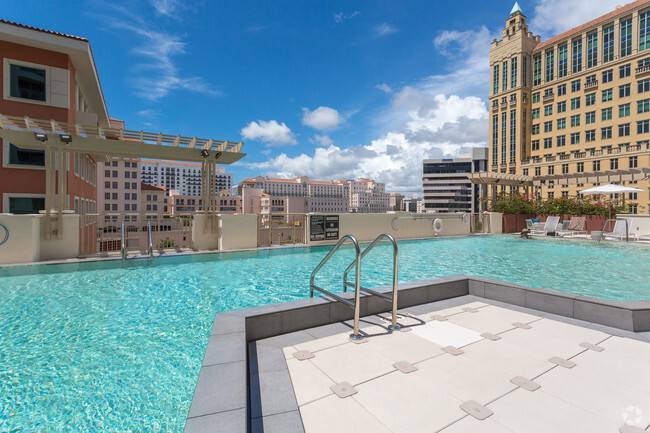 This project consists of a mixed use eighteen story apartment building with 200 residential units. The ground floor contains a 3,400 sq.ft. commercial space, and an elevated plaza on the fifth apartment floor level which contains the swimming pool and support spaces.