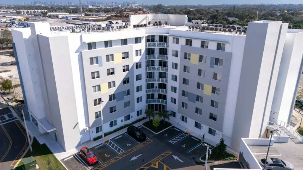 This project consists of a three-phased affordable housing development transit oriented next to the old Okeebchobe metrorail station parking lot. With a total of 84 family apartments, 7 accessible units, 186 parking posts totaling 72,995 S.F.