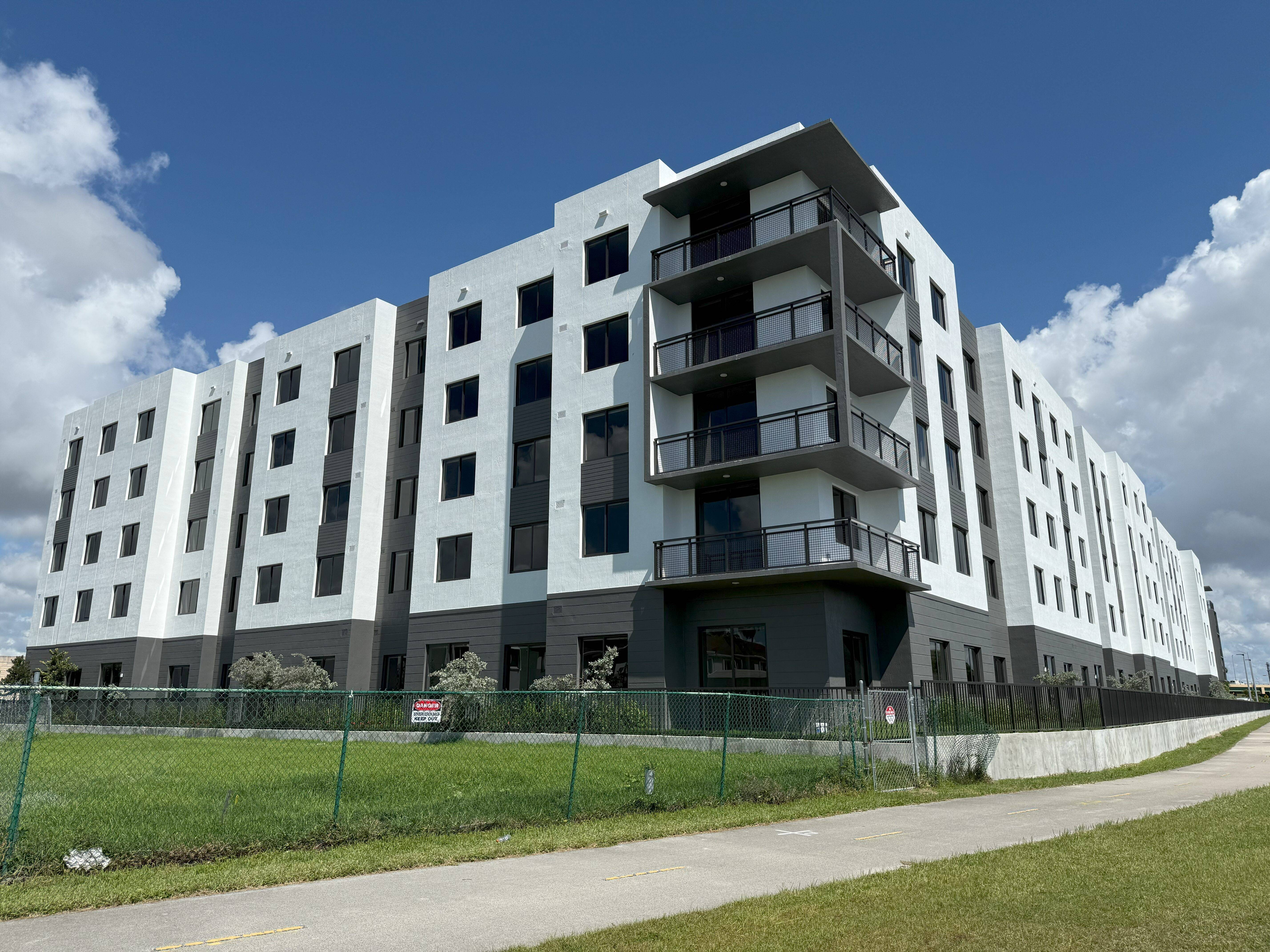 This project consists of a five story new residential building of approximately 165 units. Amenities include a bbq area, clubhouse, cyber lounge, fitness center, library, playground, pool, and sports fields.