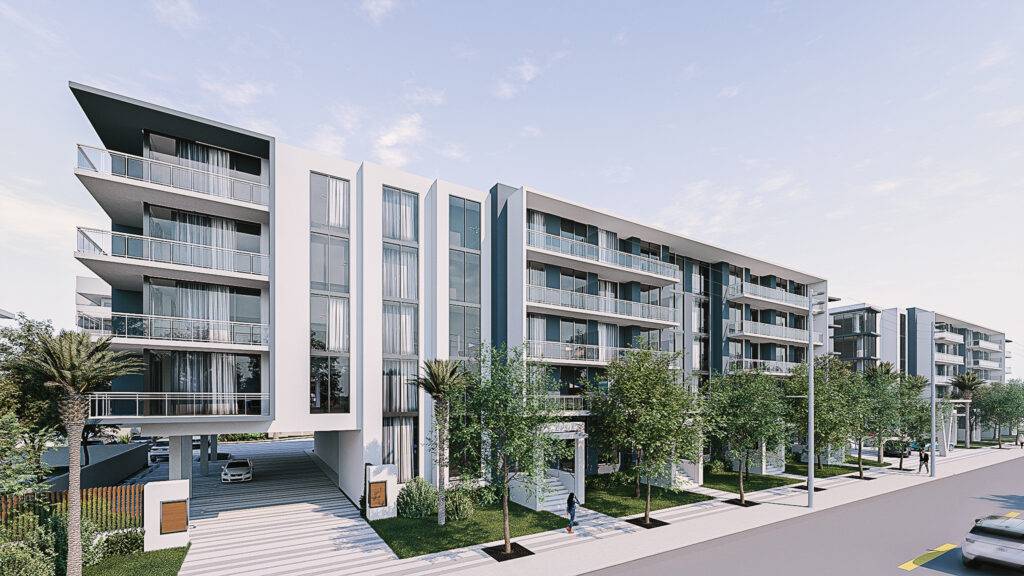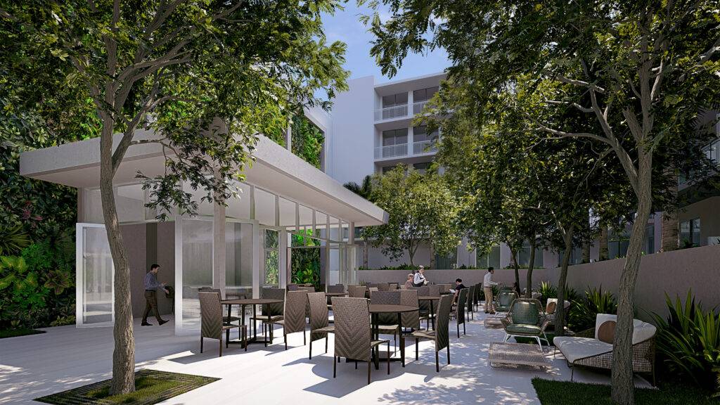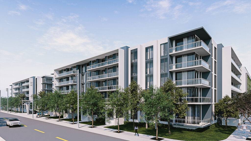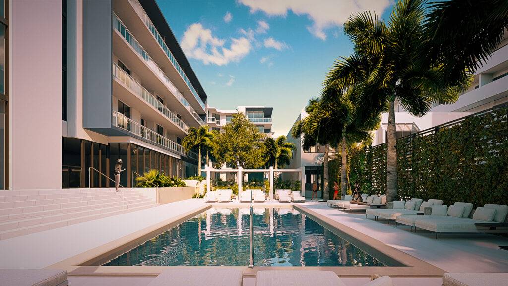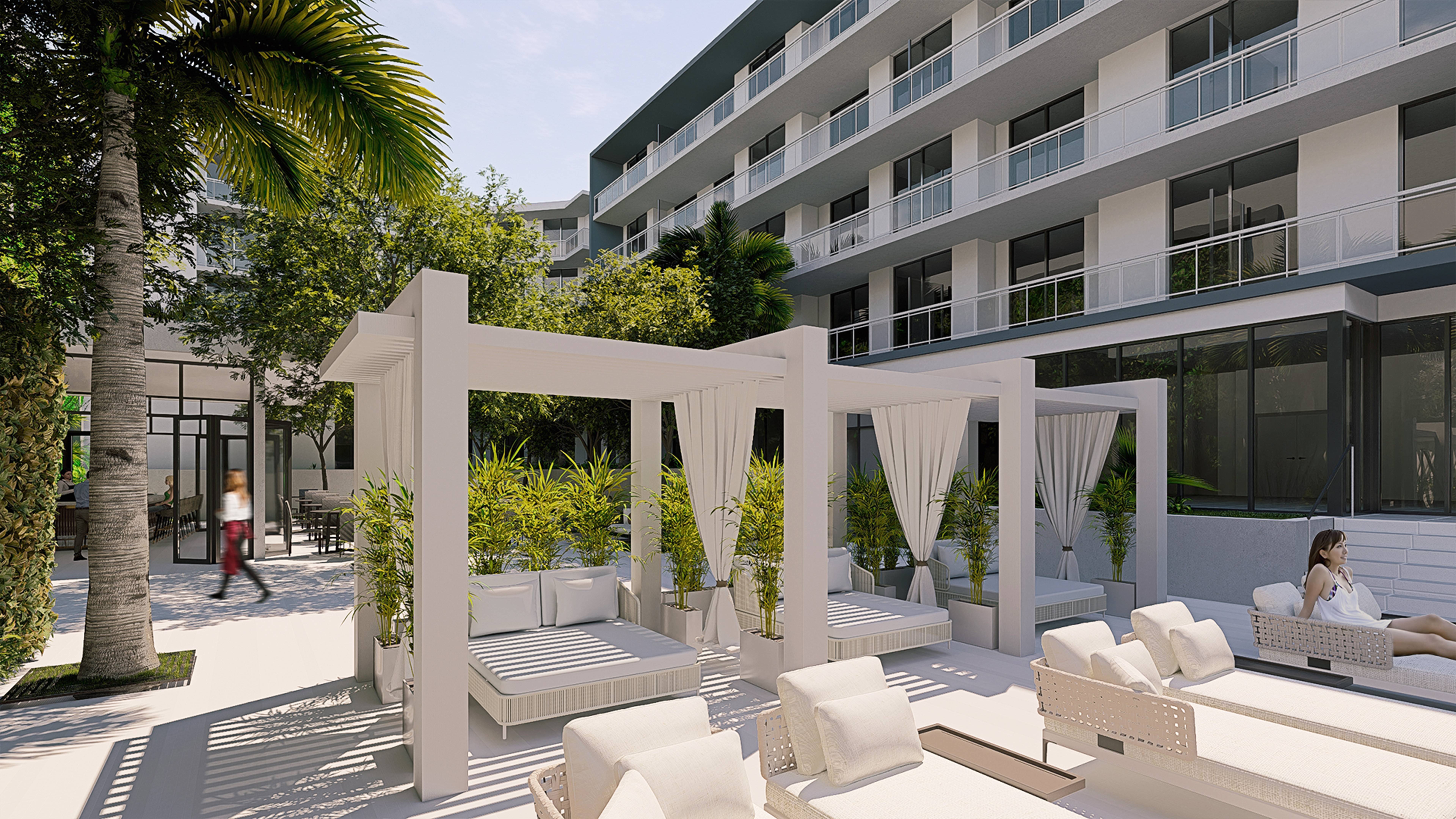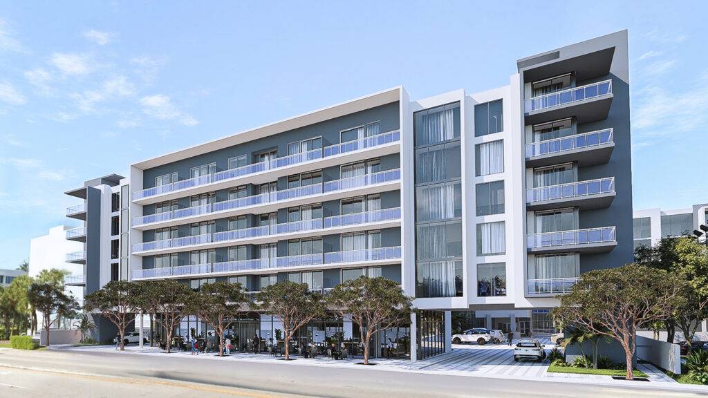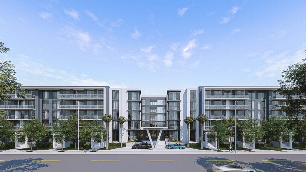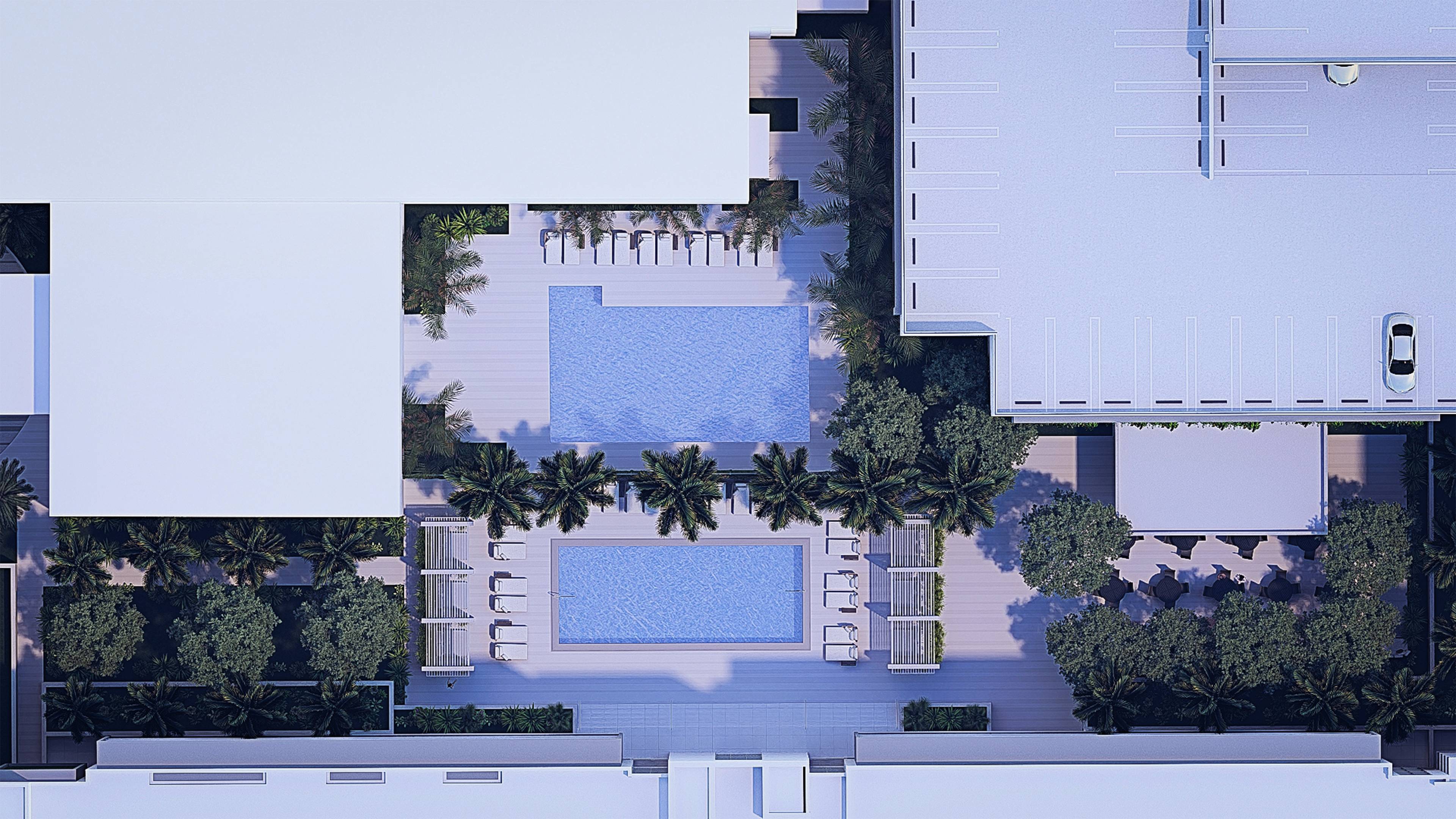 This project consists of two residential buildings—one five stories and the other six—totaling 208 units and 170,739 square feet. Shared amenities include a 19,870-square-foot courtyard with two pools and a bar, and two indoor amenity spaces on the ground floor. The project merges residential comfort with hospitality-inspired features.